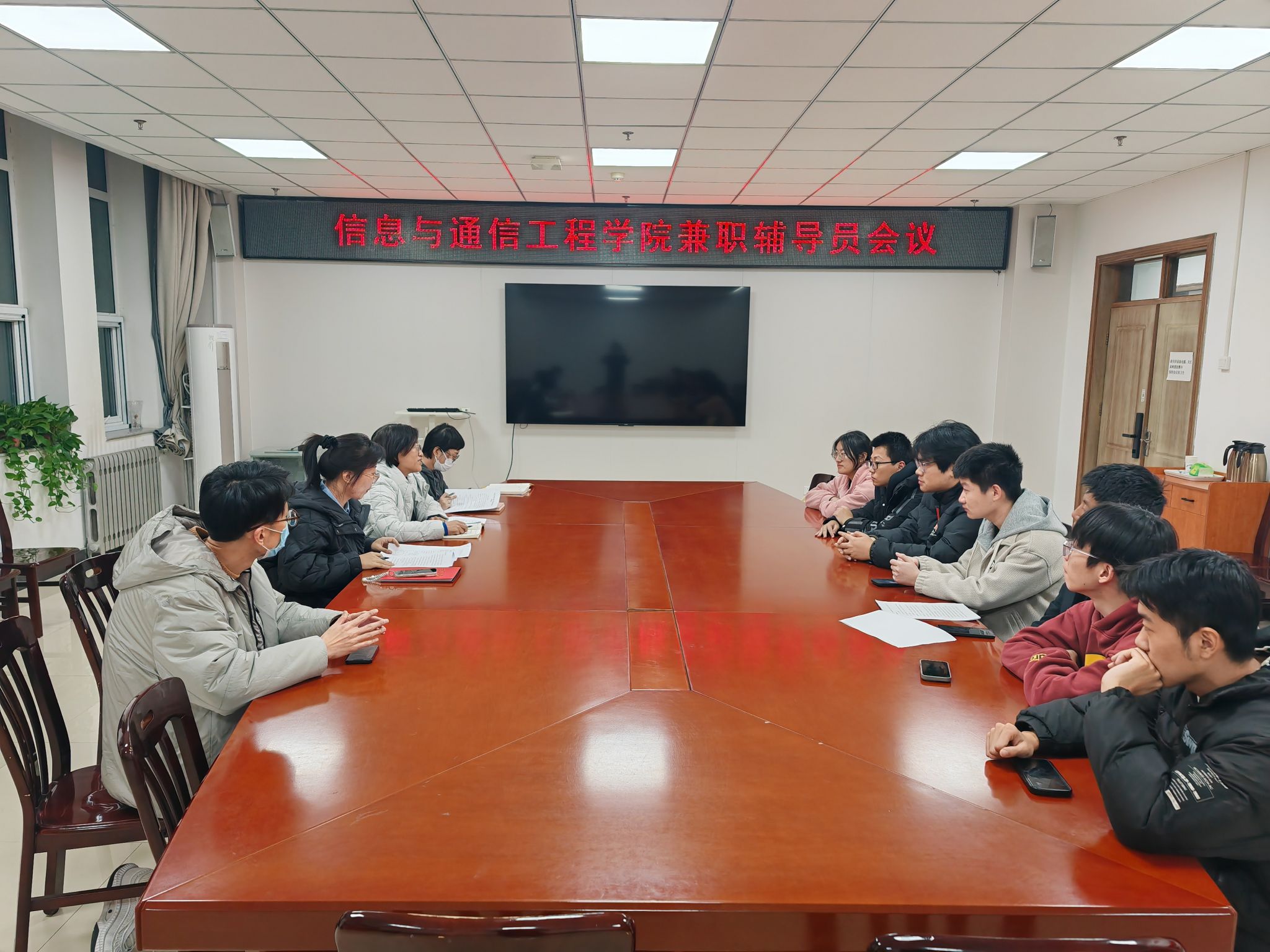 为进一步加强学生工作队伍建设,明确兼职辅导员岗位职责,提升学生管理与服务水平。11月25日,信息与通信工程学院(人工智能学院)在科学楼B713会议室组织召开了兼职辅导员工作会议。学院党委副书记兼副院长么兰、班主任及全体兼职辅导员共同参会。