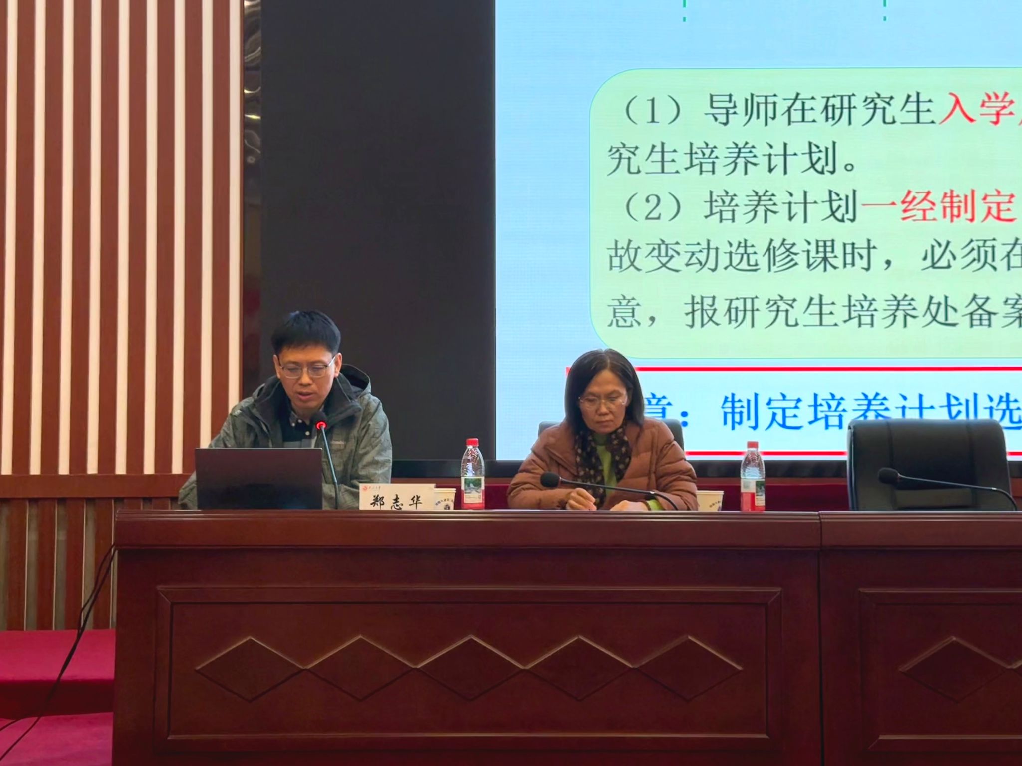 讲座中,郑志华老师首先就“研究生培养过程管理”进行了系统而详尽的解读。他围绕研究生培养流程、课程考试说明、开题报告与考核、学位论文要求、授予学位基本要求、发表学术论文规定、学术诚信规范以及论文保密管理等八个核心方面,为同学们梳理了从入学到毕业各关键环节的具体要求与注意事项。郑志华老师的讲解条理清晰,重点突出,为新生们描绘了一幅清晰的学业发展路线图,有助于大家提前规划,规避风险,顺利度过研究生阶段。随后,王建萍老师聚焦于“研究生日常教育管理”专题,从思想引领、素质提升、安全教育、创新能力培养以及职业生涯规划五个维度展开了深入介绍。她强调了树立正确价值观、遵守校规校纪、维护校园安全稳定、积极参与科研创新活动以及提早进行就业准备的重要性,为同学们的研究生生活提供了全面的行动指南。