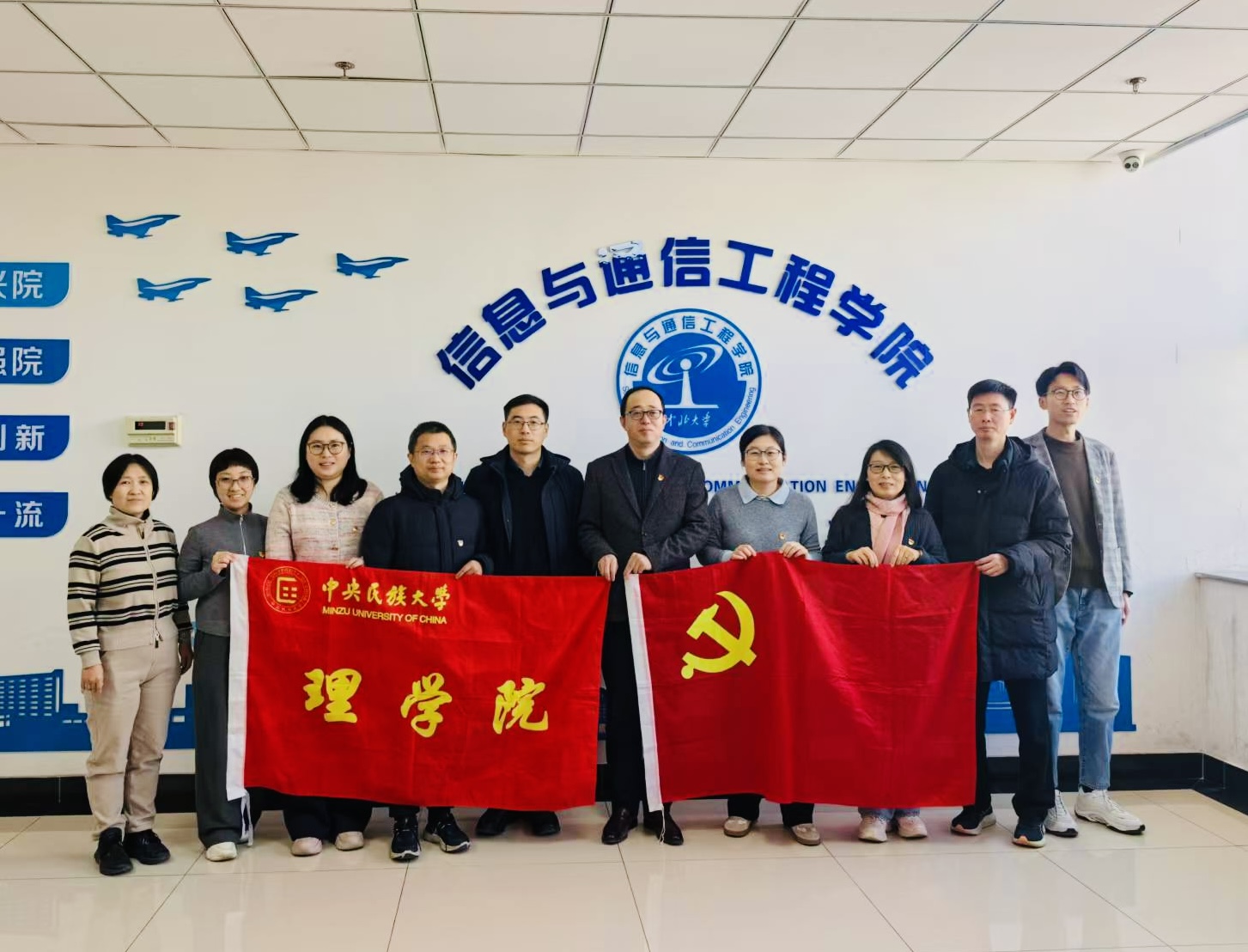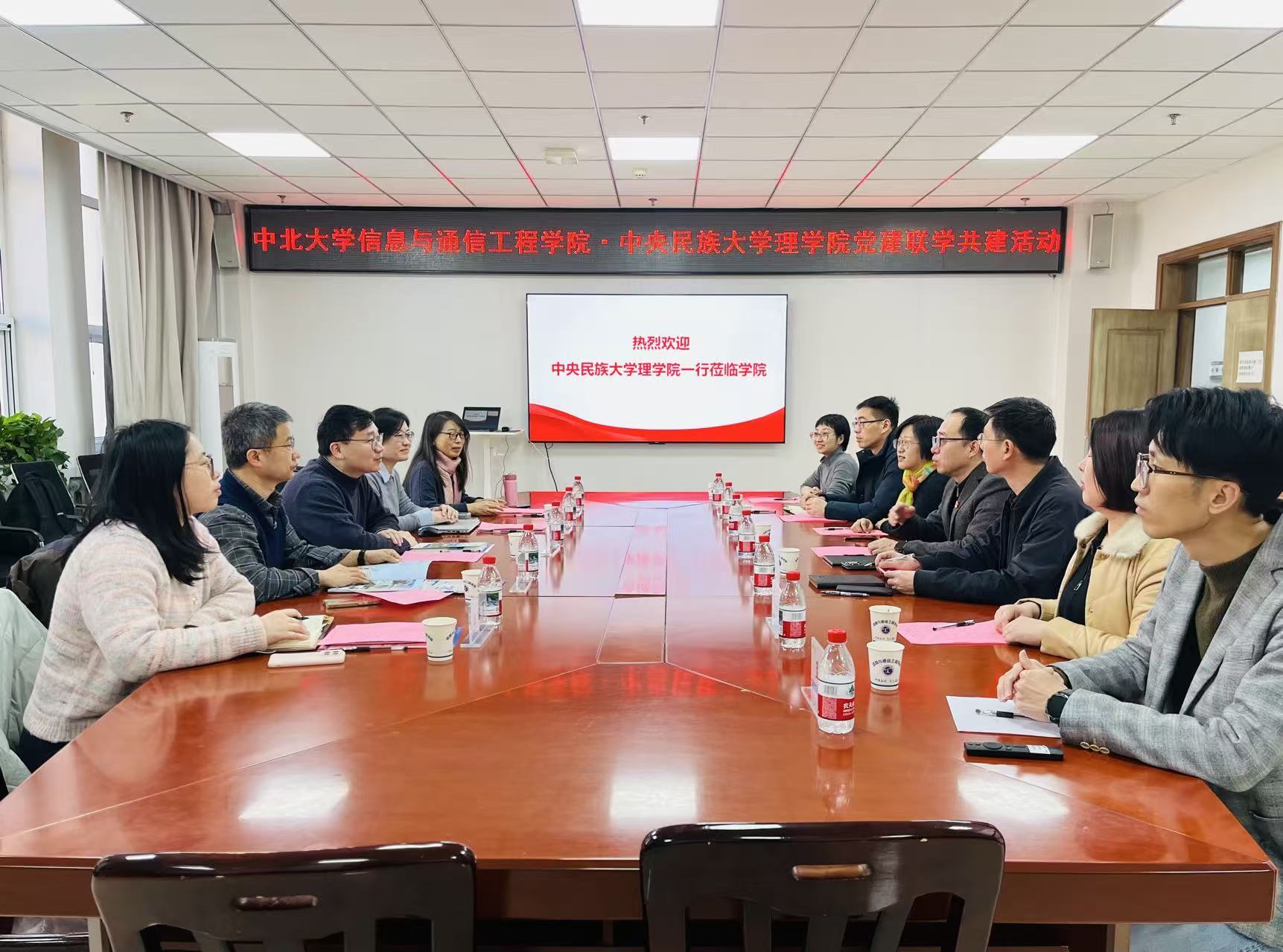 12月5日,信息与通信工程学院与中央民族大学理学院开展党建联学共建活动。信息与通信工程学院党委书记孙豫峰、党委副书记么兰、副院长陈友兴、副院长刘吉,中央民族大学理学院院长唐鑫,光电信息科学与工程系主任、教师第三党支部书记薄淑晖,以及双方党员干部参加了活动。