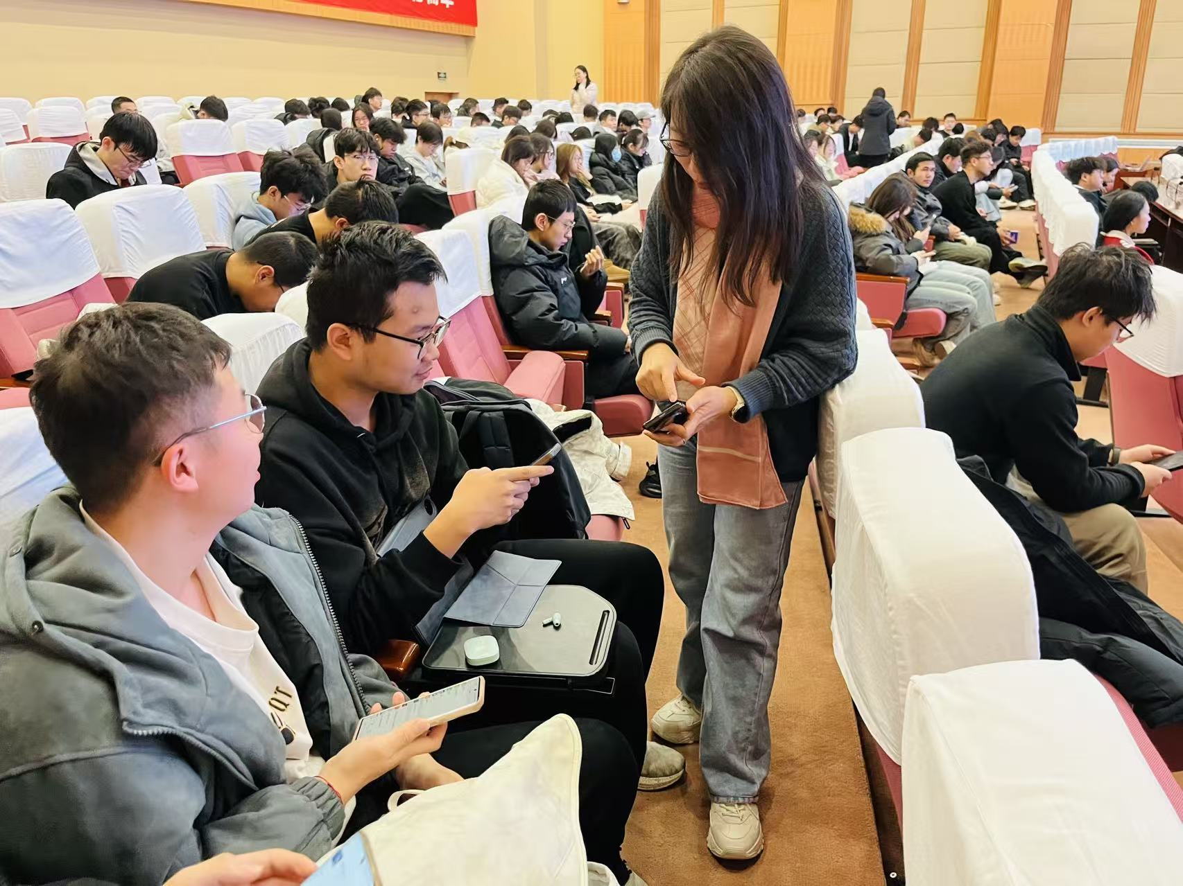 12月5日,学院在图书馆五层报告厅,举办2026年考研报名情况分析会暨中央民族大学理学院研究生招生宣讲会,中央民族大学理学院光电信息科学与工程系主任薄淑晖、光学工程导师组组长李传波、电子信息导师组组长郭红莲、光电信息科学与工程系副主任王丽娟,信息与通信工程学院辅导员孟伟、左冠华参加了活动。本次活动吸引了240余名学生参加。
