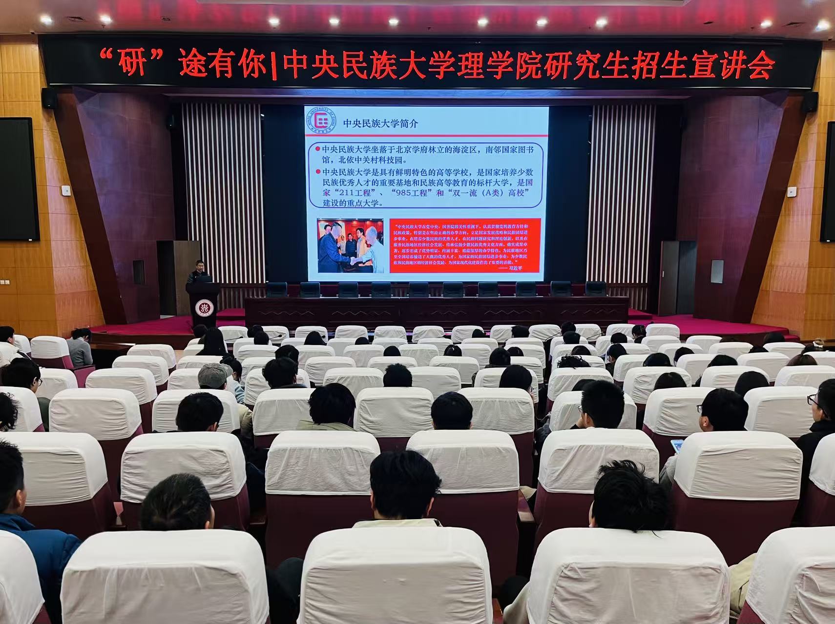 活动上,李传波详细介绍了中央民族大学理学院的师资力量、科研平台、硕士生导师的研究方向、研究生培养体系及近年来硕士就业与深造情况,用翔实的数据和生动的案例展现了报考理学院的优势与前景。宣讲结束后,中央民族大学理学院的老师们与同学们进行了面对面交流,耐心解答关于专业选择、备考准备等方面的疑问。