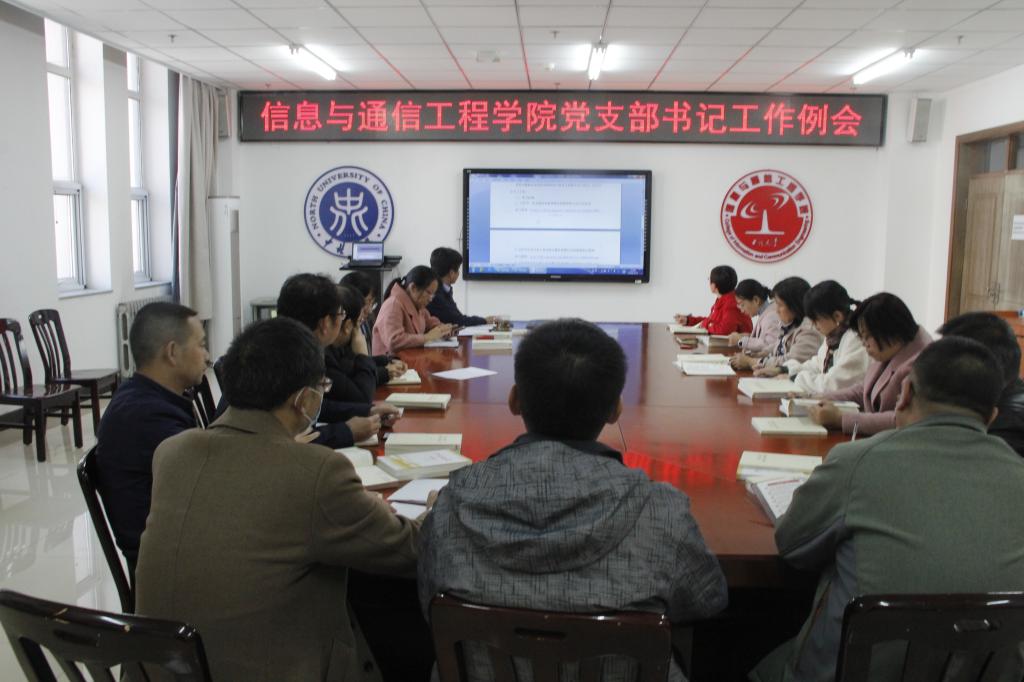 为深入学习贯彻党的十九届五中全会精神,把全会精神与学院当前工作结合起来,推动学院整体工作高质量发展,2020年11月2日下午4点在科学楼713会议室,信息与通信工程学院党委召开理论学习中心组(扩大)学习会议,院党委委员、党支部书记、专业负责人参加了学习会。会议由党委书记曹凤才主持。