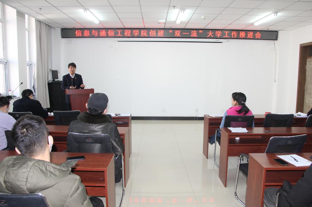 2021年1月18日上午,学院在715学术报告厅召开信息与通信工程学院创建“双一流”大学工作推进会暨寒假工作部署会。学院全体院领导、各系(中心)主任、副主任、各科室负责人和部分教职工代表参加了会议。会议由党委书记曹凤才主持。