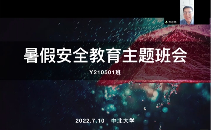 为进一步加强研究生暑期安全教育工作,提高学生安全防护意识,增强学生自我保护能力,避免安全隐患的发生,2022年7月10日,学院组织研究生班级召开暑假安全教育线上主题班会。