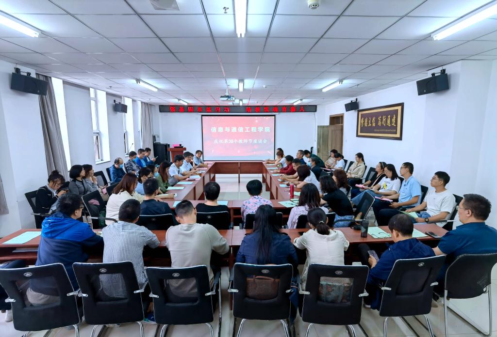 在第38个教师节来临之际,2022年9月9日下午信息与通信工程学院在科学楼B座715会议室组织“强基固本练内功 培根筑魂育新人”教师节座谈会。学院全体领导班子成员、正高职称教师代表、部分骨干教师代表以及新入职教师参加座谈会。座谈会由学院党委副书记兼副院长魏媛媛主持。
