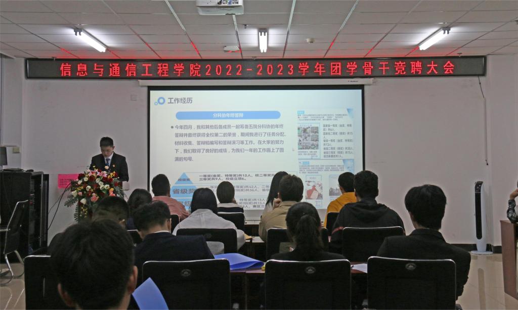 9月23日下午,我院2022届团学骨干竞聘大会在院楼715会议室举行。学院团委书记闫婷、学生科张永玲老师、孟伟老师、王彪老师与2021届团学骨干出席大会并担任评委。
