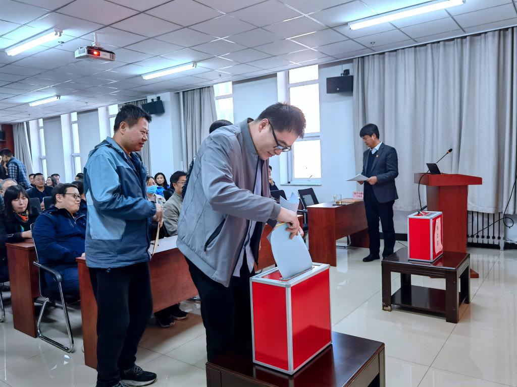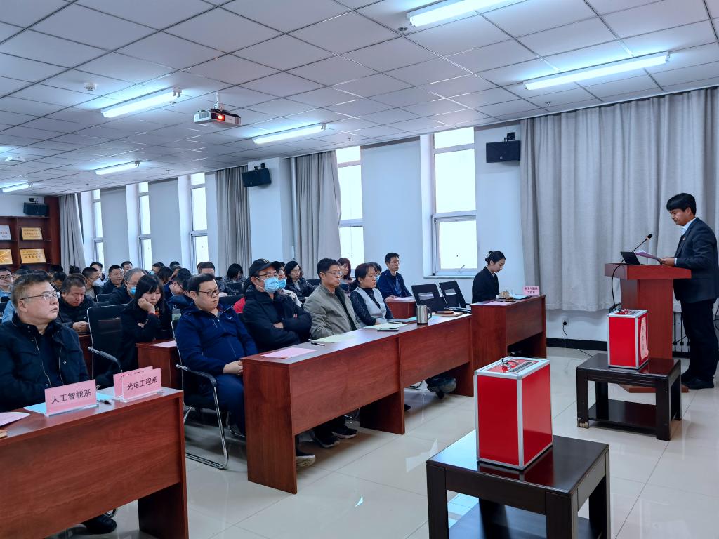 2022年10月18日下午4时,学院在科学楼B座715学术报告厅召开工会委员会换届大会、中北大学第三届“双代会”代表选举大会、中北大学第一届妇女代表大会代表选举大会,学院全体教职工到场参会并进行投票,大会由院党委书记曹凤才主持。
