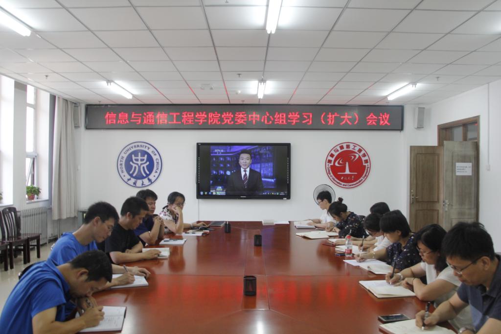 7月5日下午16时,信息与通信工程学院在院楼713召开党委中心组学习(扩大)会议。全体院领导、党委委员、各党支部书记、各科室负责人参加了本次会议。