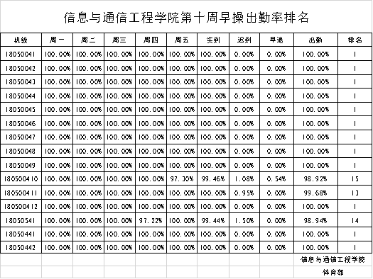 信息与通信工程学院第10周早操迟到名单汇总情况