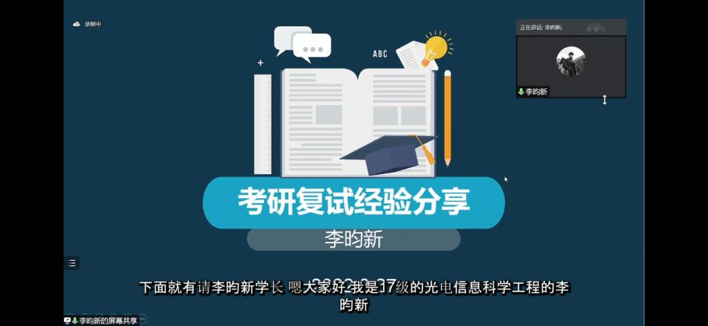 为提高交流会的针对性、时效性,结合学院考研初试达线学生报考院校人数分布,交流会邀请了分别就读于北京邮电大学张浩宇,电子科技大学李昀新,西北大学张星光,哈尔滨工程大学张宋怡琼4位嘉宾交流分享。他们从心态调整、导师联系与选择、自我介绍、专业课复习、复试面试礼仪等方面,提出了放稳心态、相信自己,认真准备、反复熟练,端庄大方、充满能量等诸多建议。四位嘉宾经验分享上各有侧重:张浩宇强调了全面阐述科研竞赛等实践经历的重要性;李昀新则更看重自我介绍的全面立体;张星光强调了面试着装和与意向导师深入交流的技巧;宋怡琼分享了心态调整以及自我能力展现的具体方法。每位嘉宾分享结束后,都与云端的同学们进行了积极交流,耐心解答了同学们提出的问题。针对“如何有效回答评委提问”,张星光解答到:“回答要注重条理,并努力在自己擅长领域与老师沟通,切忌不懂装懂、答非所问。”