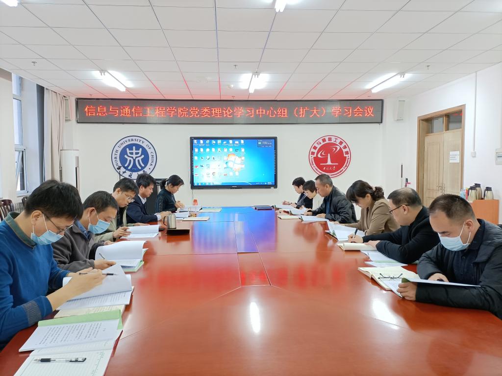 2023年3月6日,信息与通信工程学院党委理论学习中心组在科学楼B座713召开学习会。会议集中学习了习近平总书记在学习贯彻党的二十大精神研讨班开班式上的重要讲话精神、习近平总书记在二十届中央纪委二次全会上的重要讲话精神、省委书记蓝佛安在省管主要领导干部专题研讨班上的重要讲话精神。学院党委书记曹凤才主持学习会。党委理论学习中心组成员、党支部书记、科级干部参加了学习。