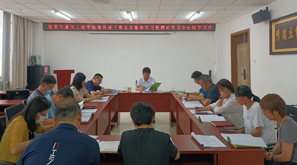 2023年6月26日,信息与通信工程学院在科学楼B座715会议室召开领导班子第五次集体学习暨理论学习中心组学习会议,学院党委理论学习中心组成员和全体党支部书记参加了学习。学院党委书记曹凤才主持学习会。