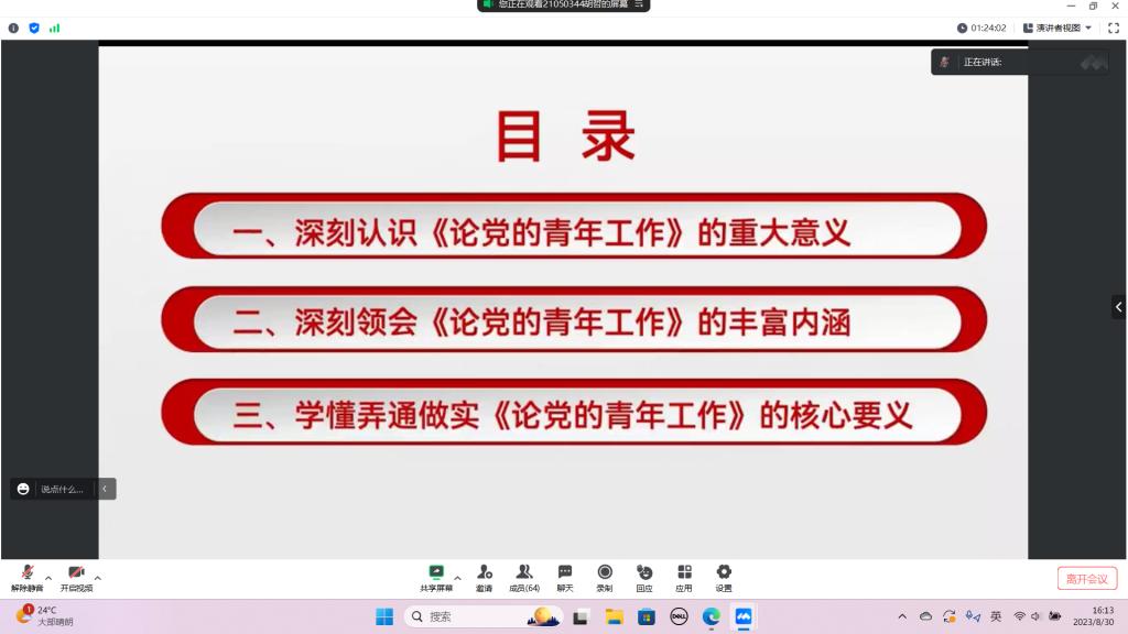 为推进学习宣传贯彻习近平新时代中国特色社会主义思想主题教育,贯彻落实党的二十大精神,提高学生党员的理论水平和党性修养,2023年8月30-31日,信息与通信工程学院党委组织党支部开展了开学前党员集中培训活动。