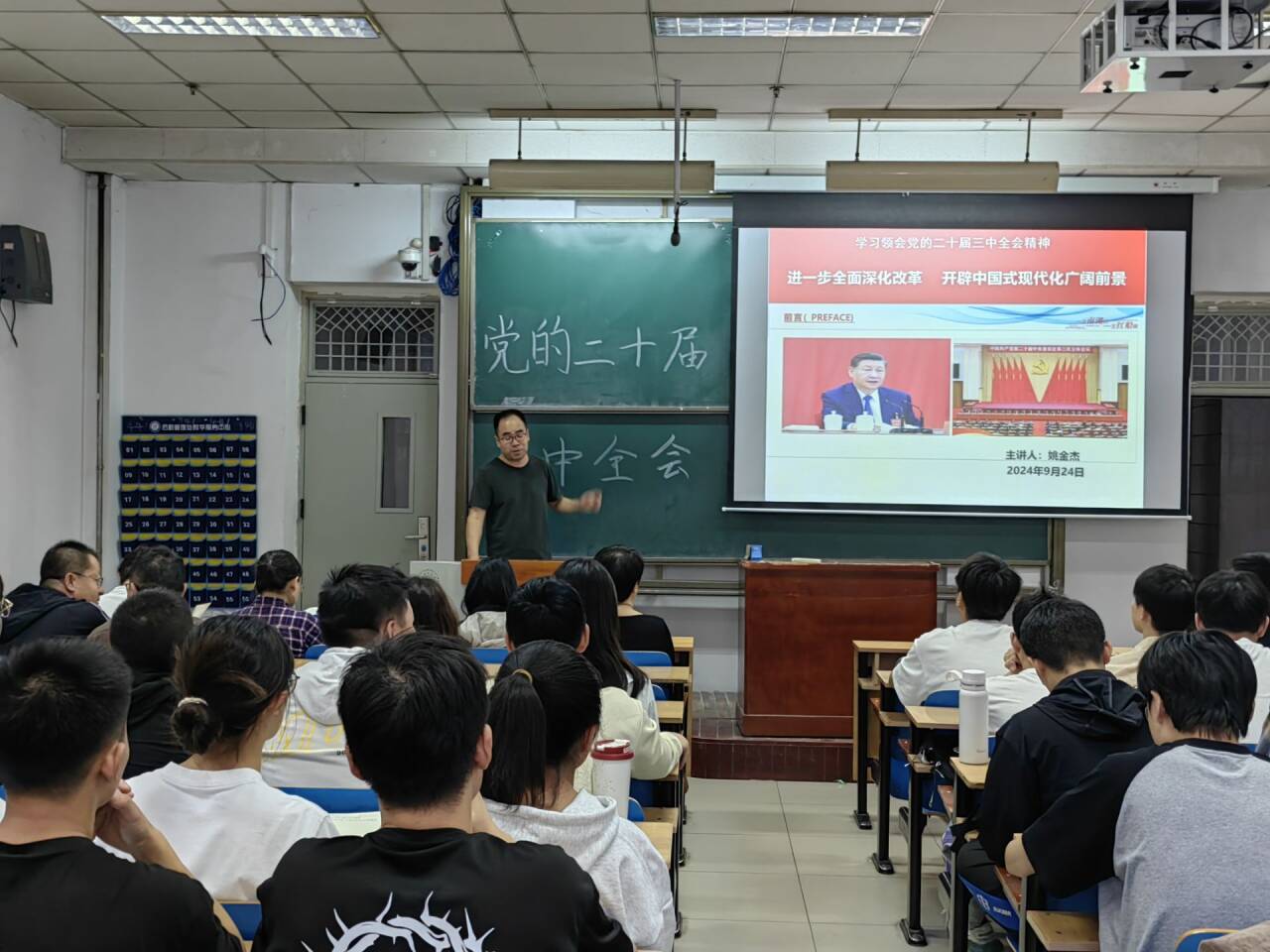 为深入学习贯彻党的二十届三中全会精神,引导师生党员切实把思想和行动统一到党的二十届三中全会精神上来,2024年9月-10月,信息与通信工程学院党委委员分别对接各党支部,为师生党员开展了“党的二十届三中全会精神”专题党课。