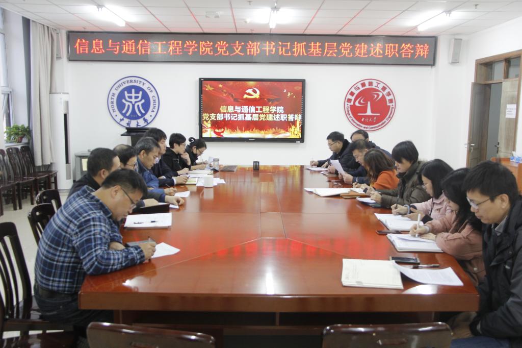 根据校党委关于2019年度基层党建述职评议考核工作的部署要求,信息与通信工程学院党委于2020年1月6日下午4点在科学楼713会议室,召开了2019年度党支部书记抓基层党建述职答辩会,会议由院党委书记曹凤才同志主持,各党支部书记参加了会议。
