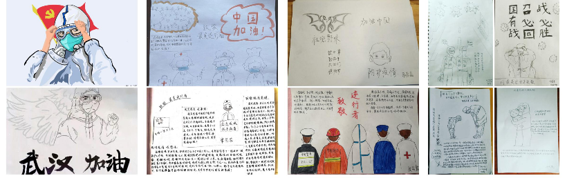 学生党员在学习之余,积极关注疫区动态,发挥自己的特长,通过绘画、设计海报、诗歌、视频、标语、口号等方式,为武汉加油,以此表达自己对武汉及全国战胜疫情的信心与决心: