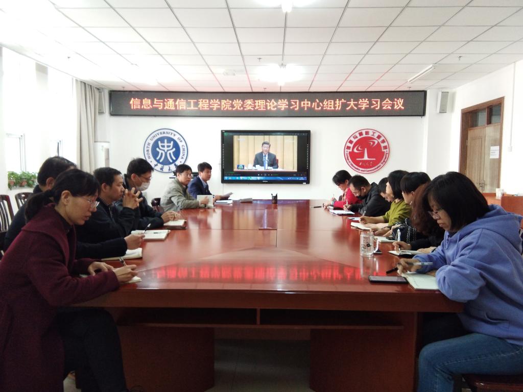 2021年3月23日下午,信息与通信工程学院召开党委中心组(扩大)学习会议,集中学习习近平《论中国共产党历史》、“两会”精神,开展了师德师风教育,并对党史学习教育进行了再安排和再部署。学院党政班子成员、全体党支部书记、科级以上干部参加了会议。会议由院党委书记曹凤才主持。