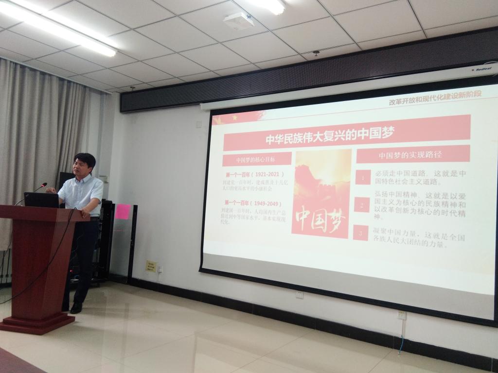 2021年5月25日下午,在科学楼B座715报告厅,校党史学习教育宣讲团成员、学院党委书记曹凤才为全院师生党员上了一堂生动的党史学习教育专题党课--党的百年光辉历程。全体党支部书记和师生党员代表参加了学习。