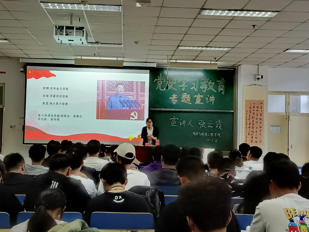 根据中北大学党史学习教育宣讲活动要求,2021年9月28日下午4:30在11112教室,信息与通信工程学院党委邀请中北大学党史学习教育宣讲团成员张云霞老师作题为《学习“七一”讲话精神 感悟百年大党人民情怀》的专题讲座,全体师生党员参加了本次学习。