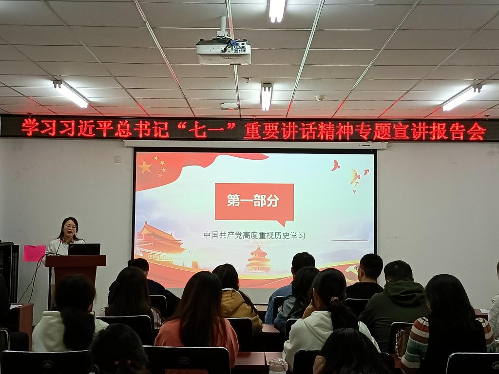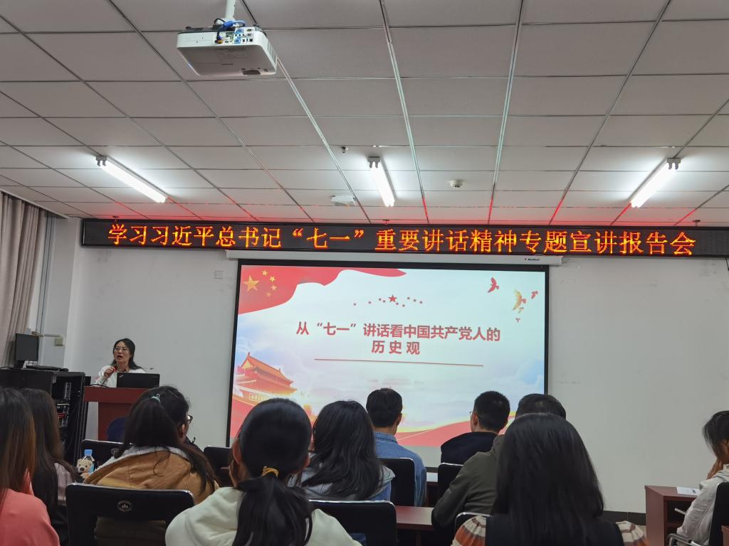 为进一步推动党史学习教育向纵深发展,按照校党委的安排部署,2021年10月5日下午4:00在科学楼B座715会议室,信息与通信工程学院党委开展了学习习近平总书记“七一”重要讲话精神专题宣讲活动,邀请校党史学习教育宣讲团成员、马克思主义学院张慧玲老师作题为《从“七一”讲话看中国共产党人的历史观》的专题讲座,全体师生党员参加了学习。