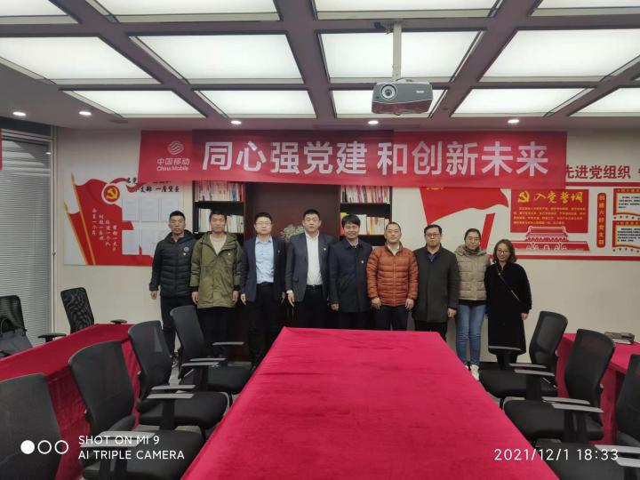 2021年12月1日下午,信息与通信工程学院党委书记曹凤才与通信工程教工党支部书记王晨光带队,一行六人前往中国移动通信设计院开展党建结对共建活动,中国移动通信设计院王瑞峰院长、景岗副院长、薛云山所长、张刘涛经理以及支部委员等出席了活动。