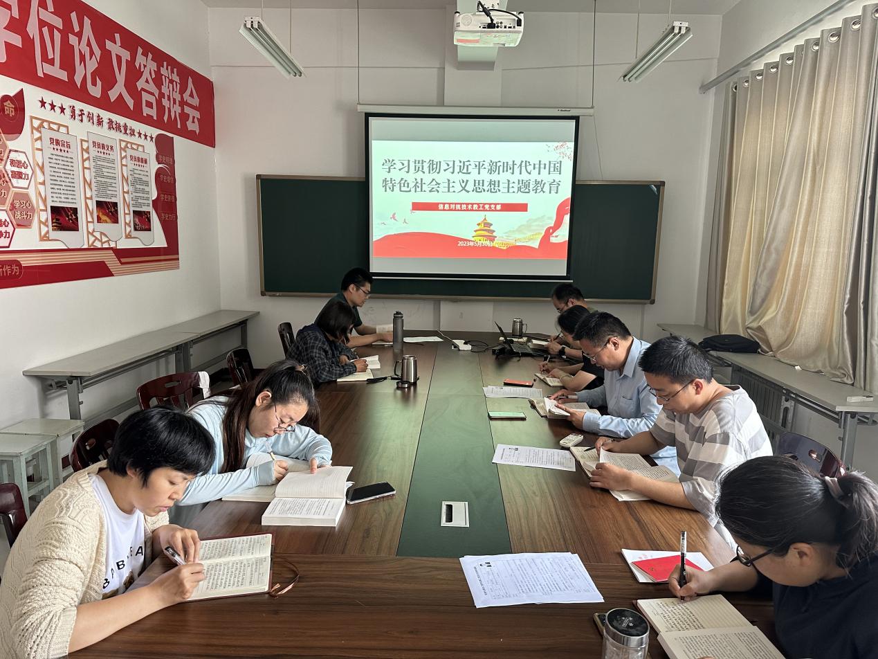 2023年5月30日,信息对抗技术教工党支部在无损检测楼6层党群活动室,系统学习了《习近平新时代中国特色社会主义思想专题摘编》第五章和《论党的自我革命》两个主题。