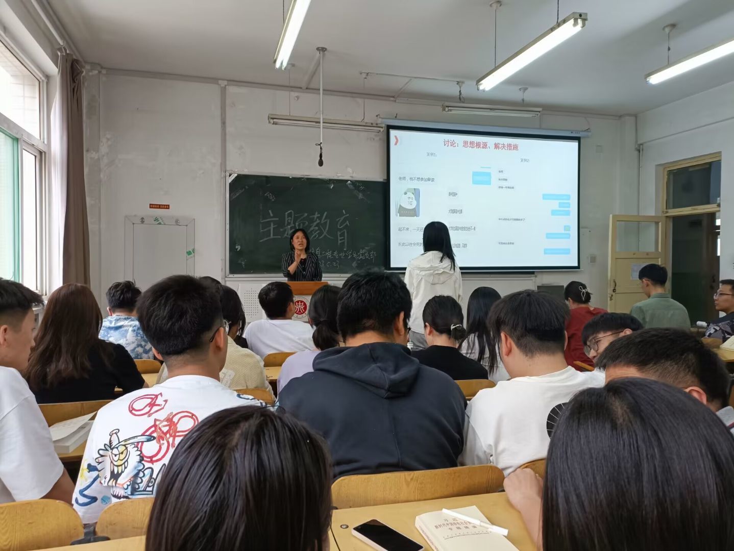 随后,陈老师针对当前校园中出现的与大学生身份不相符的消极现象,通过案例分析,开展小组讨论,剖析思想根源、总结问题症结,大家交互思想,研讨解决办法,启发大家思考如何实实在在把学习成果转化为推动班级、推动学院各项工作的强大动力。
