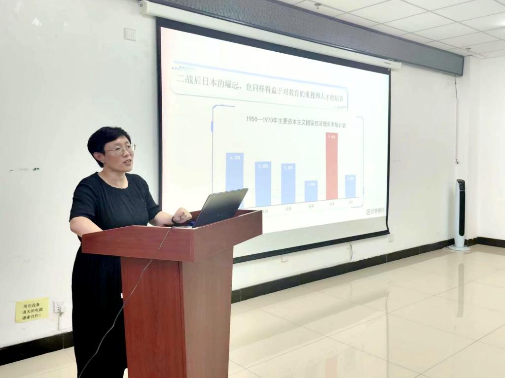 邢老师结合相关视频从“坚持教育优先发展,实施科教兴国战略”、“实施创新驱动发展战略,实现科技自立自强”、“实施人才强国战略,聚天下英才而用之”三个方面带领大家深刻领会党的二十大报告中关于教育、科技、人才的重要论述,深入理解实施科教兴国、人才强国、创新驱动发展三大战略。