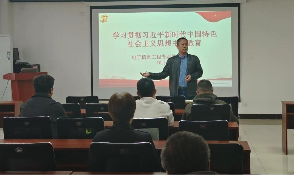 为进一步深入学习贯彻习近平新时代中国特色社会主义思想主题教育,2023年10月17日,电子信息工程专业教工党支部在科学楼B座715会议室开展集体学习会。会议由支部书记李凯同志主持。