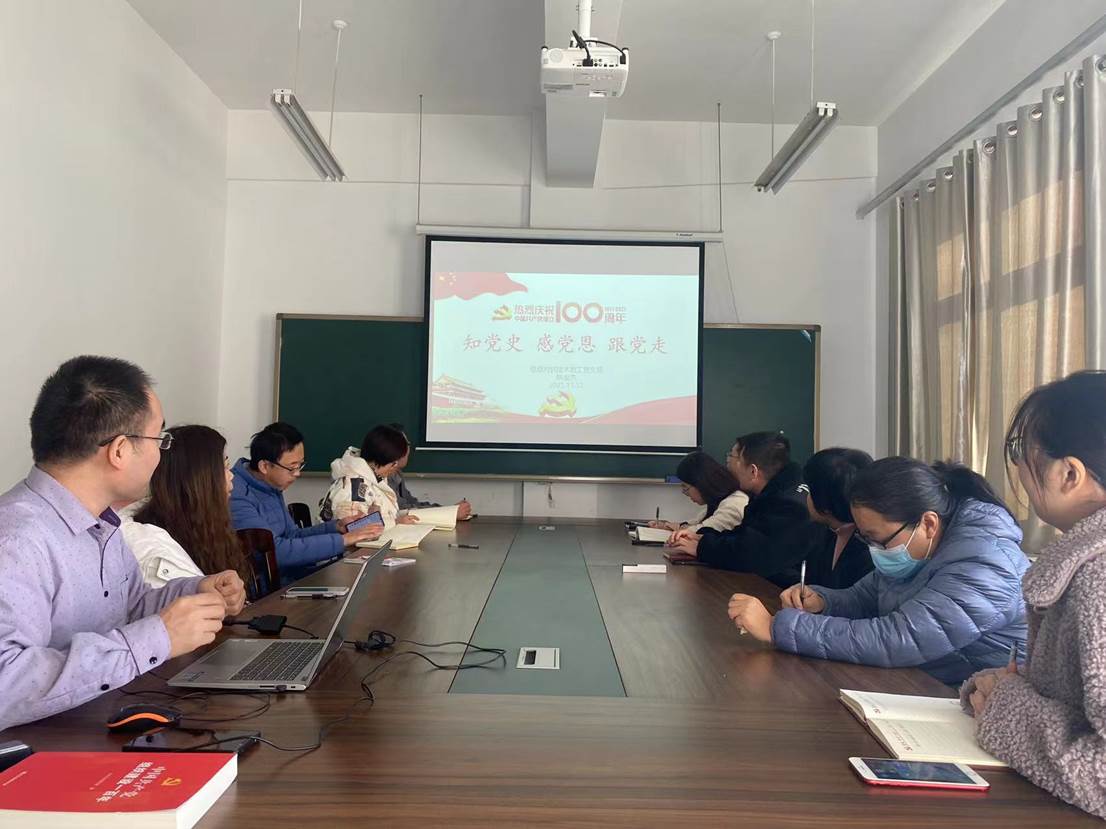根据院党[2021]13和院党[2021]16号文件学习通知,党支部书记姚金杰结合2021建党百年和学校冲击双一流的目标任务,以“知党史 感党恩 跟党走”为题进行了党课讲授,鼓励大家从党史中汲取营养,在校党委、院党委的正确领导下,坚决瞄准双一流建设目标不断贡献自己最大力量。