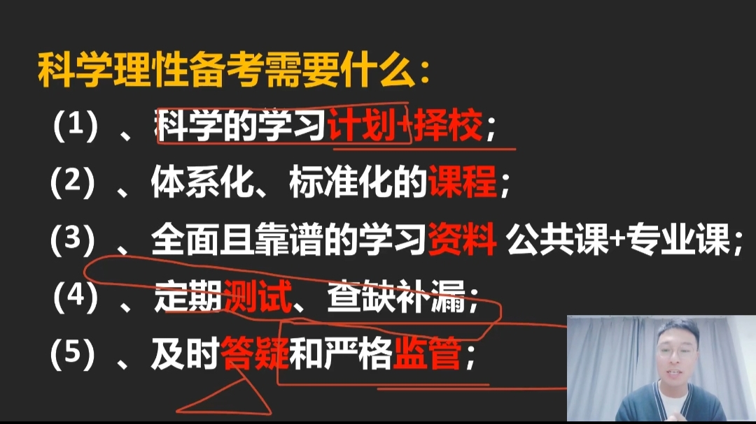 栗老师从近年考研形势介绍、目标院校和专业选择、复习备考规划三大板块开讲。他以“是不是必须考研”设问,启发同学们思考自身情况,并结合个人追求和职业规划来决定是否考研,不要在盲目跟风中迷失自我。李老师以武汉大学、东北大学、中北大学等高校2022年的研究生报考录取情况为例,为同学们介绍了当前考研的大形势和新风向。他说到;“正确的选择和努力同样重要”,院校和专业选择过程中要回归实际。复习备考规划版块,栗老师着重从时间分配与方法选择两方面为同学们进行了分享,详细介绍了政治、英语和专业课的具体考试特点和备考方向。