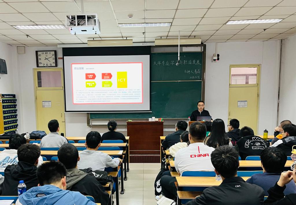 3月31日下午,学院在11106H教室举办职业生涯规划讲座,讲座主题为大学专业学习与职业发展,学院2009届校友、南京翰华通信技术服务有限公司山西区域华为业务人事经理葛晶受邀担任主讲嘉宾。学院就业辅导员孟伟主持讲座,120余名学生参加。