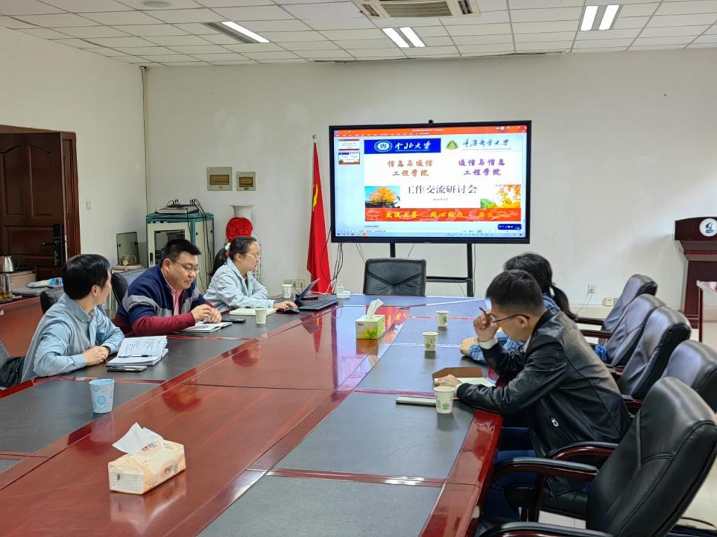 重庆邮电大学通信与信息工程学院座谈会上,团委书记郝东超分享了学院团学特色工作,创新创业教育学院副院长张挺介绍了创新创业融入人才培养全过程的特色做法,王汝言院长重点从学院历史沿革、专业建设、学科建设成效、教学科研平台以及对外合作交流等方面进行介绍,副院长余翔就实验室建设、培养方案制订、学生科创能力培养、学生实习基地建设等进行交流。