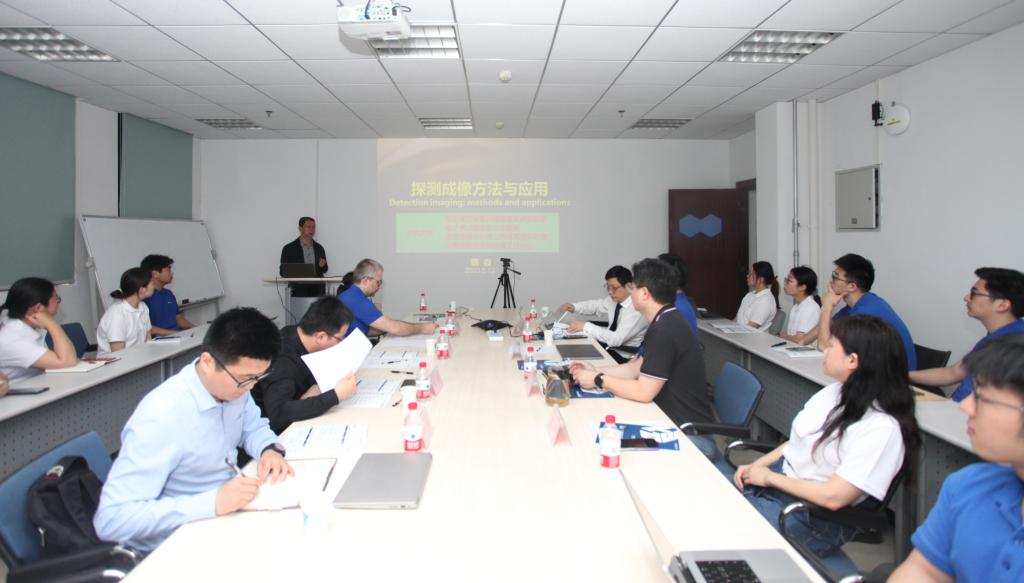 学院一行还受邀参加“数字PET技术进展及应用中德研讨会”,与来自于华中科技大学、中国科学技术大学、德国马格德堡大学等相关领域的专家学者,共同探讨数字成像的最新技术和应用。研讨会上,韩焱教授、陈平教授、李坤老师分别以“探测成像基础方法与应用”、“数据驱动的快速CT成像”、“PEPT:一种PET的创新变体及其工业应用”为主题进行了会议报告。
