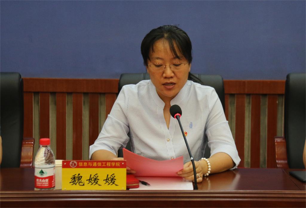 接着,全体人员一同观看学院2022年度团委工作展示视频。院党委副书记兼副院长魏媛媛和电子信息工程专业负责人李凯宣读院级团内先进集体和院级先进个人的表彰决定;学院获奖集体和个人代表上台领奖。