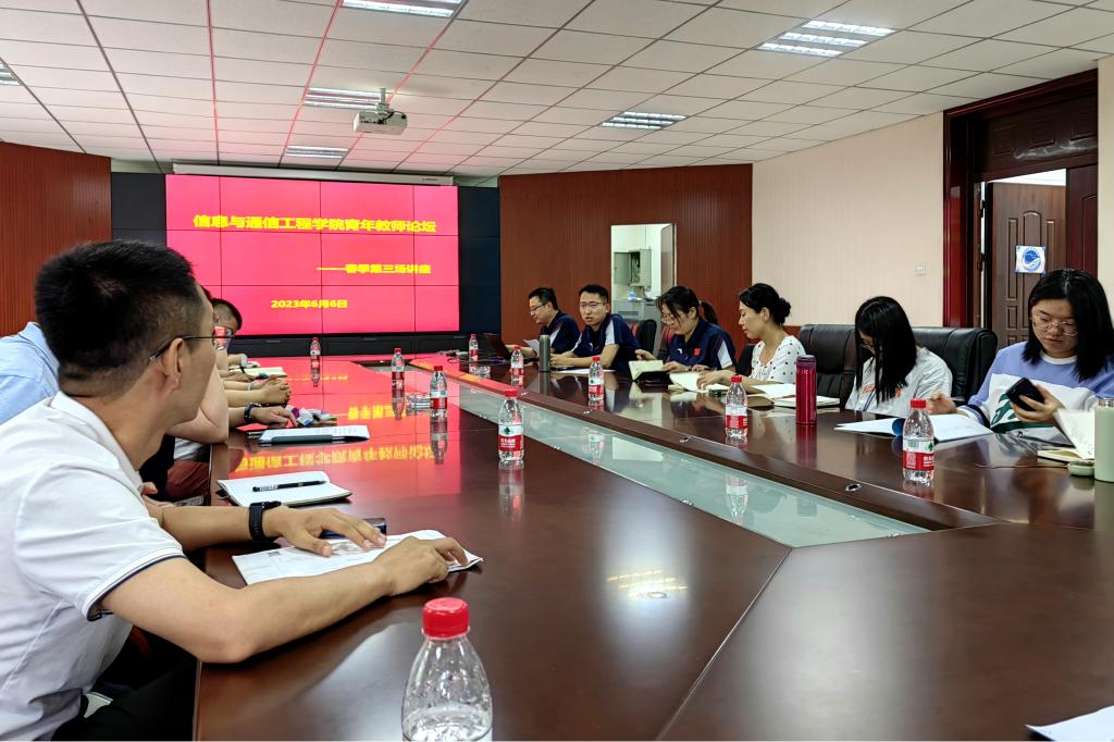 为进一步提高青年教师的教学质量和科研能力,2023年6月6日下午4点,在无损楼201会议室举办信息与通信工程学院本学期第三期青年教师论坛交流会。此次论坛主讲嘉宾为陈平院长,近五年入职的教师参加青年教师论坛交流会。