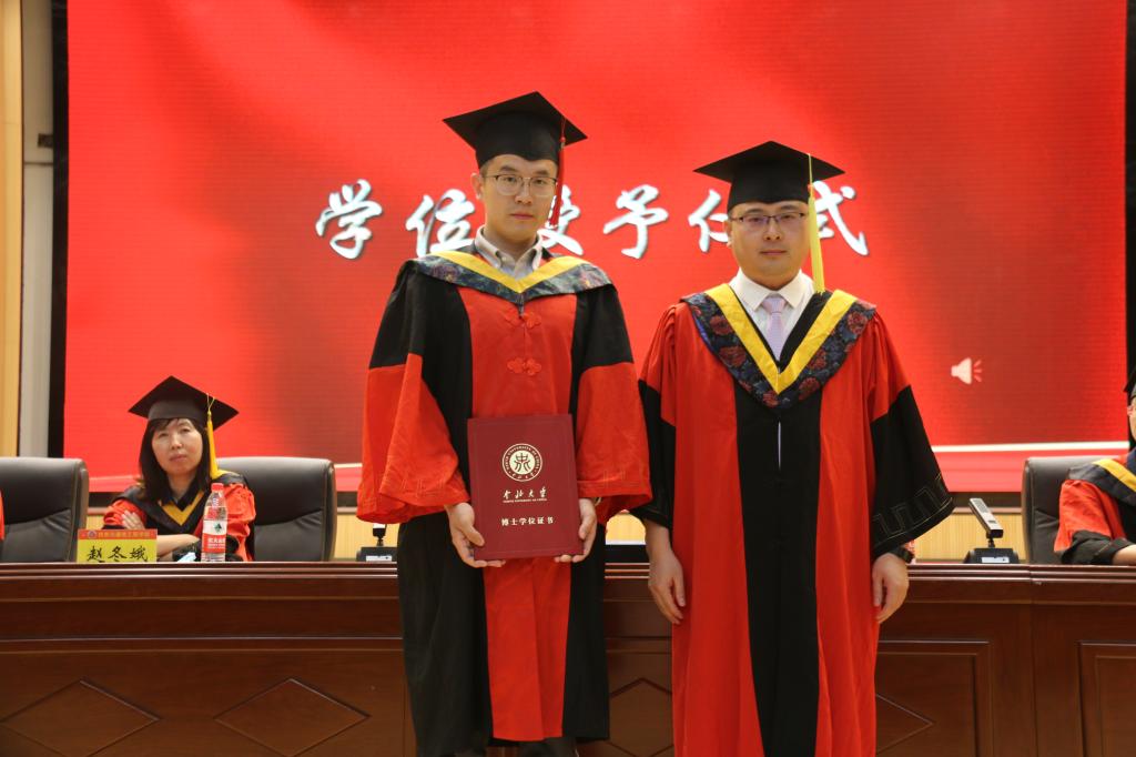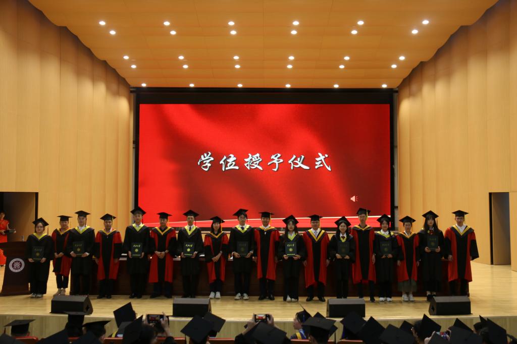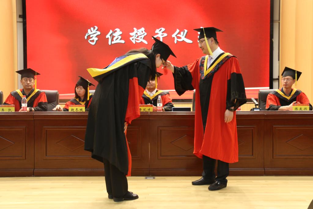 最后,博士、硕士、学士学位获得者依次上台,学院领导逐一拨穗、颁发学位证书,并与同学们亲切握手、合影留念,愿同学们此去前程似锦,展翅高飞。