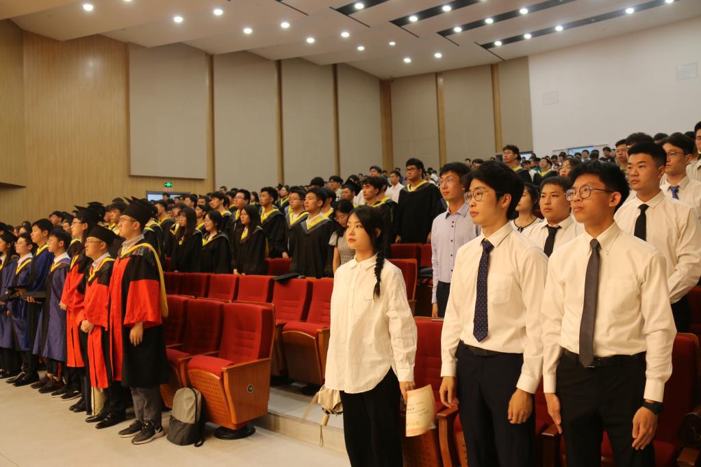 典礼在庄严的国歌声中拉开帷幕,学院院长陈平向顺利完成学业的2023届毕业生表示热烈的祝贺,并宣读“2023届优秀毕业生表彰决定”,副院长赵冬娥宣读“2023届毕业生校友导师”聘任决定,主席台领导为同学们颁发荣誉证书和聘书。