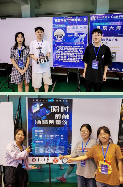 本次竞赛中,曲天宇、张子怡、樊岩鑫团队在“迷宫寻宝光电智能小车”比赛中获得实物赛全国一等奖,万瑞嘉、马雅莉、李马喆昊团队在“酒精浓度的非接触测量”比赛中获得实物赛全国一等奖;团队成员中曲天宇、樊岩鑫、万瑞嘉、马雅莉、李马喆昊均为我院学生。