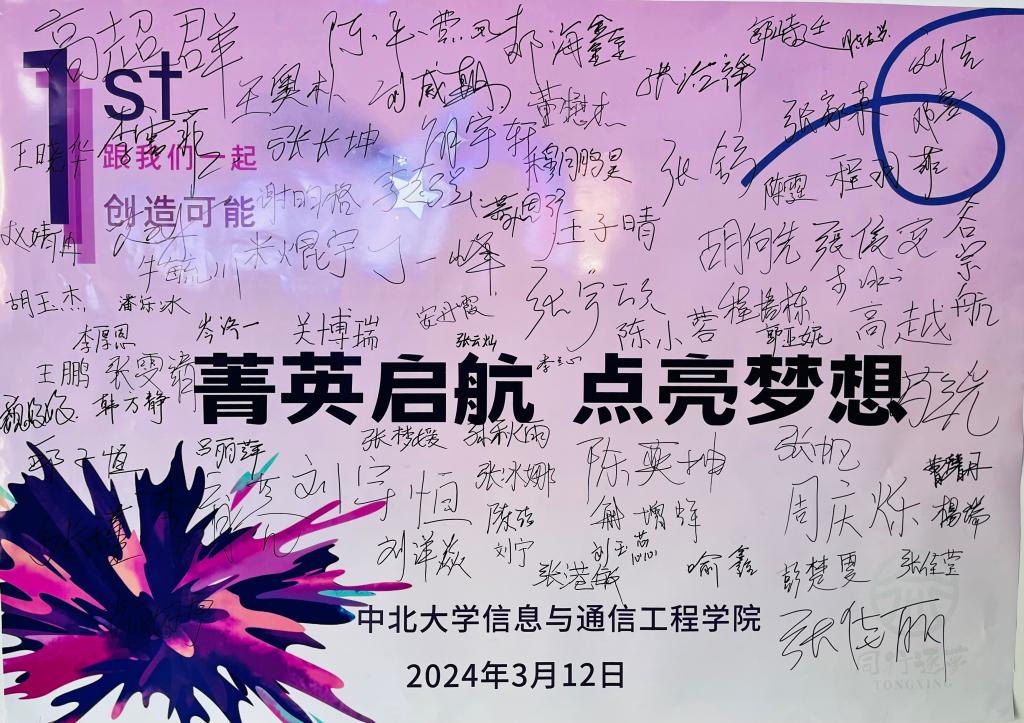 “菁英计划”旨在集中学院资源,构建全过程、进阶式、个性化的拔尖创新人才自主培养模式,为学生配备“一对一”科创导师,提升学生科学素养和创新能力,同时为学生配备生涯教练,引领学生发现自己所爱和才志所在,培育个人品牌,赋能未来。启动仪式前,同学们在“菁英启航,点亮梦想”的海报上留下了自己签名,书写了自己“精英”成长的第一笔。学院领导也在海报上留下了自己的签名,勉励同学们启航梦想。