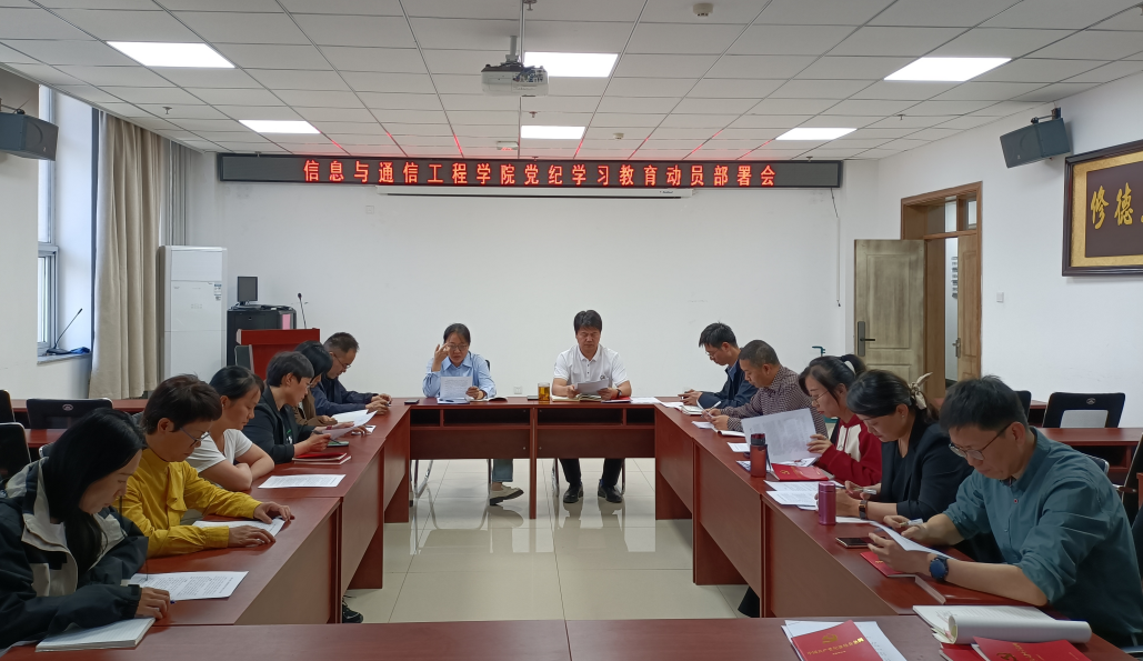 2024年4月23日,信息与通信工程学院党委在科学楼B座715召开专题会议,动员部署党纪学习教育工作。学院党委委员、党支部书记参加了会议。会议由学院党委书记曹凤才主持。