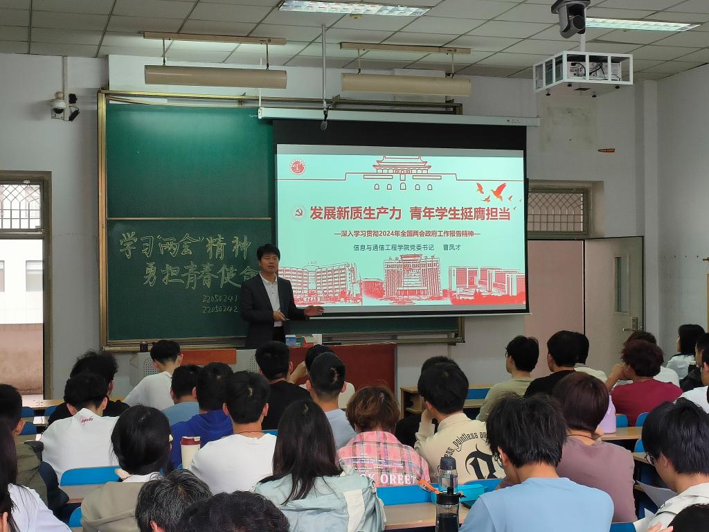 为深入学习贯彻落实习近平总书记在全国“两会”期间的重要讲话和全国“两会”精神,落实立德树人根本任务,4月19日-28日期间,信息与通信工程学院领导班子走进本科生班级开展“感悟两会精神 强化使命担当”主题班会。
