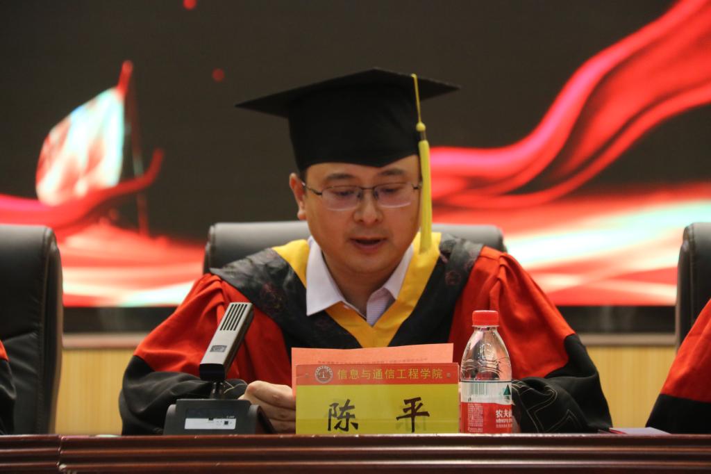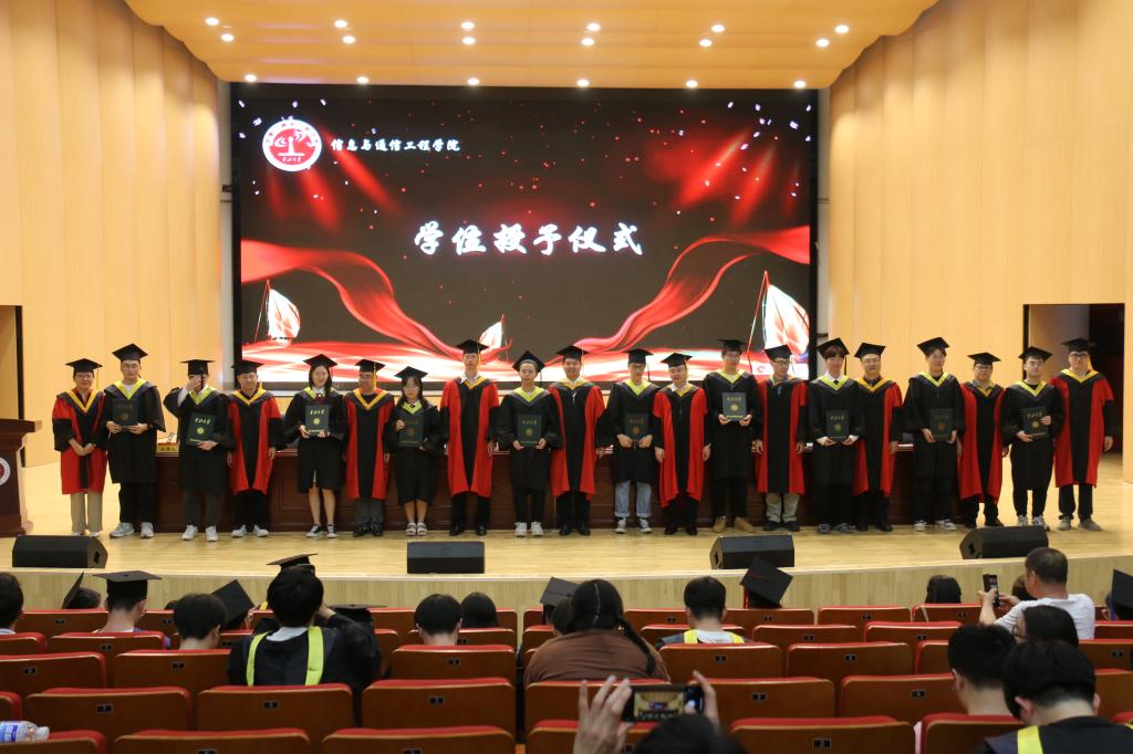 六月蝉鸣又起,青衿之志可期。6月18日下午3:00,信息与通信工程学院2024届毕业典礼暨学位授予仪式在科艺苑隆重举行。信息与通信工程学院党委书记曹凤才、院长陈平、副院长陈友兴、刘吉电子与通信工程系主任姚金杰、光电工程系主任程耀瑜、本科各专业负责人、学院2024届全体毕业生、毕业班班主任共同参加了毕业典礼,典礼由院党委副书记魏媛媛主持。