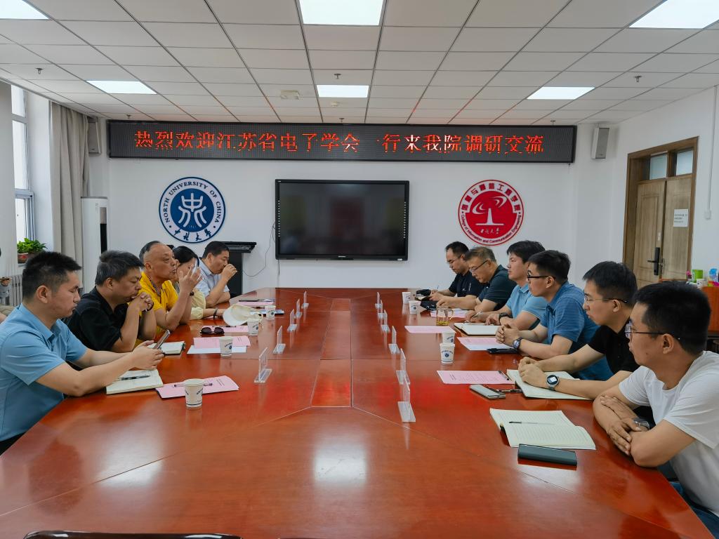 座谈会上,学院党委书记曹凤才代表学院对江苏省电子学会一行来访表示热烈欢迎,并对学院研究生培养、师资队伍、学科建设、科学研究等方面做了详细的介绍;副理事长徐旗表示此行主要是考察学校的科研成果并推进与当地企业进行对接,推动产学研用深度结合。