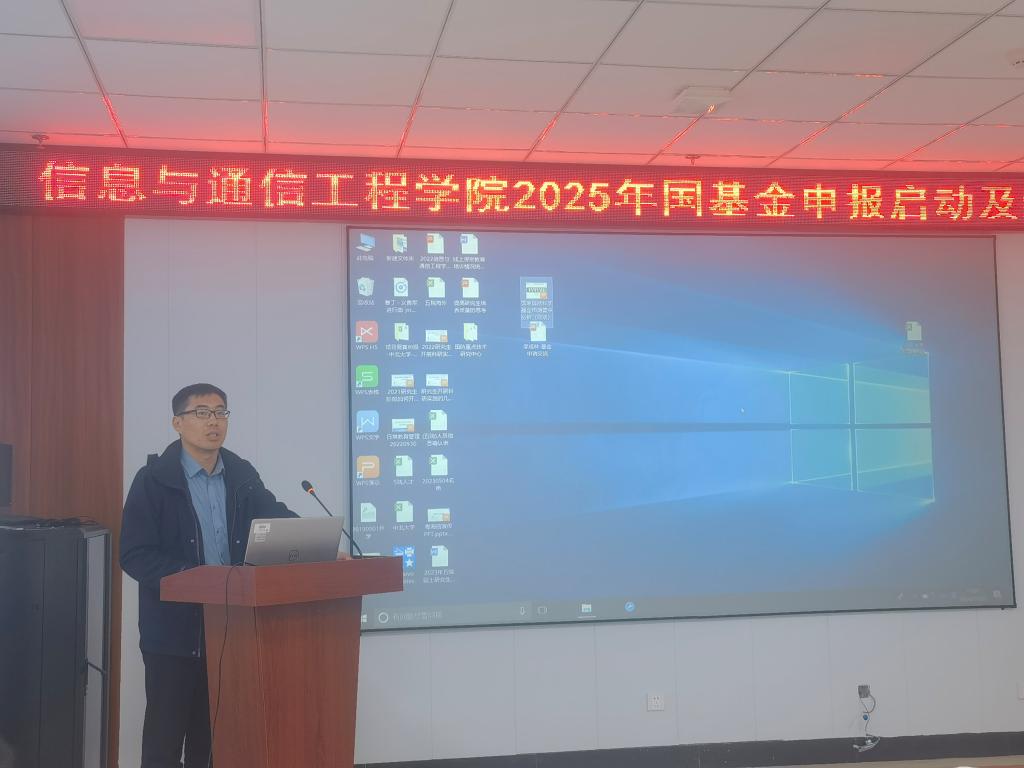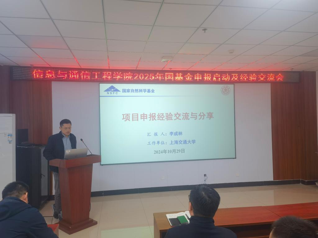 2024年10月29日下午,信息与通信工程学院在科学楼B座715学术报告厅召开了2025年国家自然科学基金申报启动及经验交流会,学院邀请了上海交通大学李成林教授作题为《国家自然科学基金项目申报经验交流与分享》的专题报告,院长陈平出席并作申报动员,会议由科研副院长刘吉主持,学院全体拟申报教师参会。