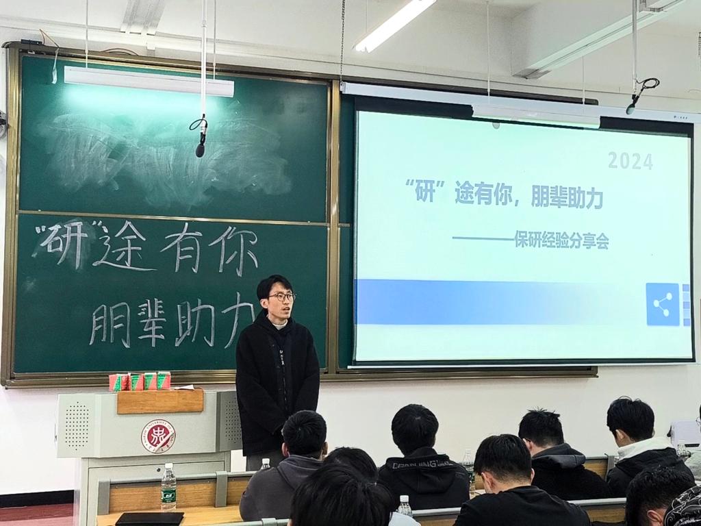 为帮助学生了解最新推免政策和趋势,助力学生成功深造,2024年11月12日下午,学院在17号楼105H举办“研途有你,朋辈助力”——保研经验交流会,本次活动邀请保研至中科院、浙大、厦大、中南大学、华中科技、电子科技、西电、北航和重庆大学等知名院校的学长为大家分享保研经验,活动由学院辅导员孟伟主持。各年级150余人参加了活动。