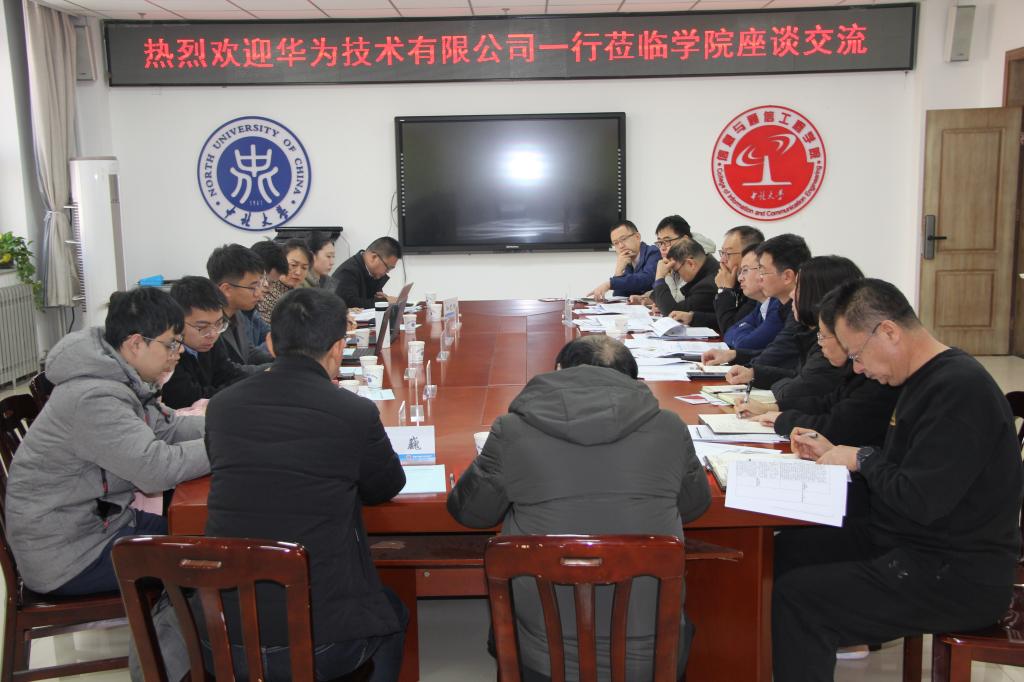 11 月27日上午,华为开发者创新中心杨明顾问、孙艺珊经理及相关技术人员一行到信息与通信工程学院调研交流。信息与通信工程学院院长陈平、教务部副部长王海宾、信息与通信工程学院教学院长陈友兴及各专业负责人、学院实验实践中心主任、教师代表出席座谈会。