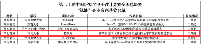 2025年8月14日-17日,“兆易创新杯”第二十届中国研究生电子设计竞赛全国总决赛(以下简称“研电赛”)在深圳信息职业技术大学顺利举行,来自全国各地的635支队伍,经过作品展示及答辩角逐出最终的国家级奖项。我校在总决赛中共获得;全国商业计划书一等奖1项、二等奖1项、技术竞赛二等奖3项、企业命题三等奖1项的良好成绩,同时我校庞存锁老师获得优秀指导教师,学校荣获“优秀组织奖”。