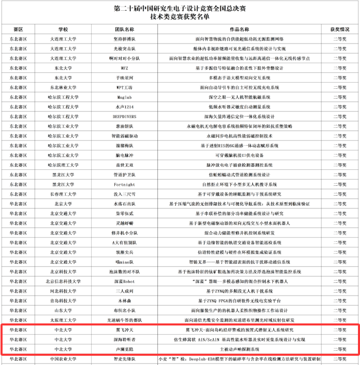 本届竞赛于2025年3月正式开赛,共吸引了333所高校及科研院所的8228件作品参赛、参赛师生超过34000人,相比往届规模增长12%。我校在学生工作部(人民武装部)和信息与通信工程学院的精心组织下约60支队伍经过校赛、华北赛区初赛、赛区现场赛的激烈角逐,获得华北赛区技术赛获一等奖13项、二等奖18项、三等奖15项的良好成绩;最终6支队伍成功晋级全国总决赛。本届比赛中,在同学们及指导老师的辛勤付出下,作品水平提升显著,获得了较好的比赛成绩。