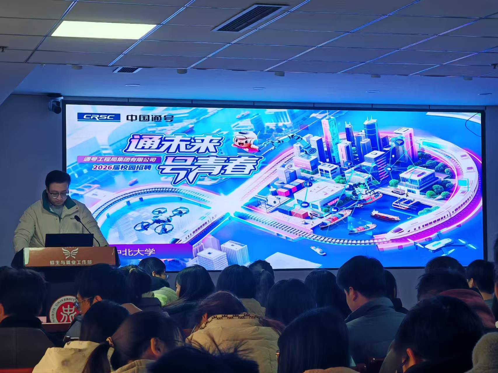 11月26日下午,信息与通信工程学院在11号楼7层报告厅成功举办中国通号工程局集团2026届专场招聘会。通号工程局集团与中北大学有着多年深厚合作渊源,此次招聘会既是双方校企合作的集中展示,更是学院为学子搭建优质就业桥梁、精准对接岗位需求的关键举措。招聘会吸引百余名电子信息工程、通信工程、轨道交通信号与控制、自动化等专业应届毕业生到场参会,互动咨询环节气氛热烈。
